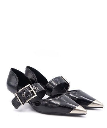 Eleganti decolleté in pelle Naplak nero, caratterizzate da una fibbia regolabile sul collo per una calzata sicura ed un tocco distintivo. Il tacco di 4 cm offre un perfetto equilibrio tra stile e comfort, ideale per un uso quotidiano raffinato o occasioni speciali. Design sofisticato e materiali di alta qualità assicurano durata e raffinatezza.