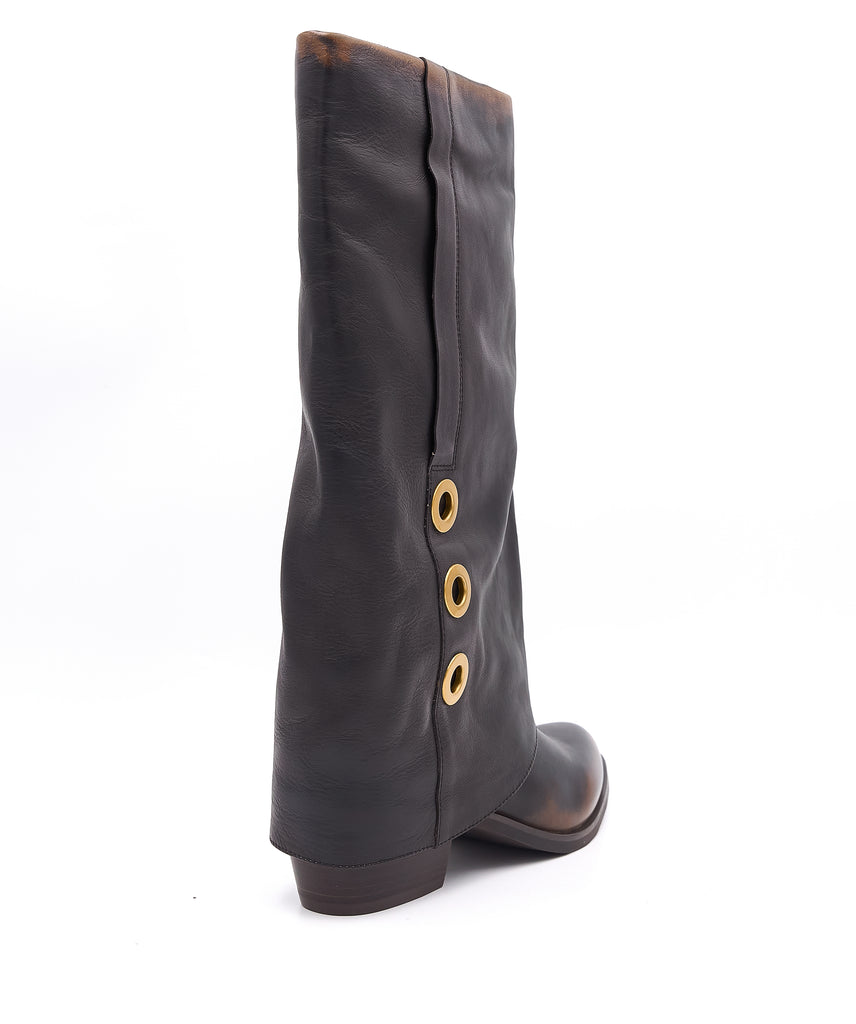 Elegante stivale in pelle color moro firmato BRUNO PREMI, caratterizzato da un raffinato risvolto in pelle che aggiunge dettaglio e struttura al design. Il tacco di 5 cm assicura un comfort ottimale mantenendo una linea slanciata, ideale per un look sofisticato e versatile. Perfetto per chi cerca qualità artigianale e stile contemporaneo.