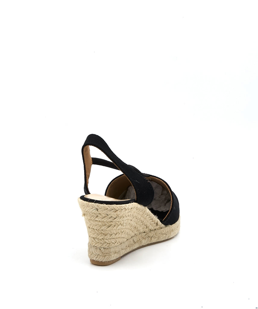 Scarpa di campesina in tessuto nero con zeppa in corda, da CASTALLER. Semplice ed elegante, perfetta per le tue passeggiate estive grazie alla sua comoda zeppa che dona stabilità. Ideale per completare i tuoi outfit con uno stile unico e di tendenza.