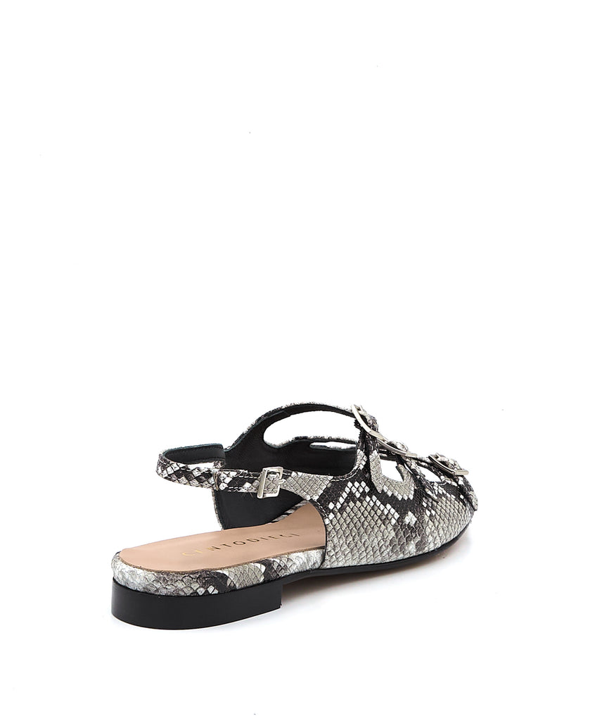 Questo sandalo di pelle pitonata CENTODIECI presenta una fodera in pelle e un tacco di 2 cm. La pelle di alta qualità e il design elegante e alla moda rendono questo sandalo perfetto per un look raffinato e comodo. Non solo un'aggiunta alla moda alla tua collezione di calzature, ma anche una scelta intelligente per il comfort e lo stile.
