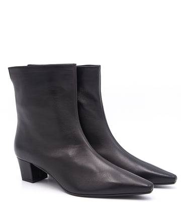 Questo stivaletto CENTODIECI in pelle nera è caratterizzato da un design a tubo sfilato che assicura una calzata elegante e confortevole. La fodera interna in pelle garantisce traspirabilità e comfort per tutto il giorno, mentre il tacco di 5 cm dona un'altezza raffinata senza rinunciare alla stabilità. Perfetto per completare look sofisticati con un tocco di stile professionale e ricercato.