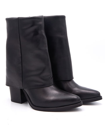 Questo stivale in pelle di alta qualità offre un design elegante con risvolto e un tacco di 7 cm, perfetto per valorizzare la gamba. La sua altezza a tre quarti garantisce un comfort superiore e una calzata sicura, ideale per chi cerca stile e funzionalità in ogni occasione. La finitura nera aggiunge versatilità, rendendolo un capo indispensabile per un guardaroba sofisticato.