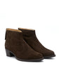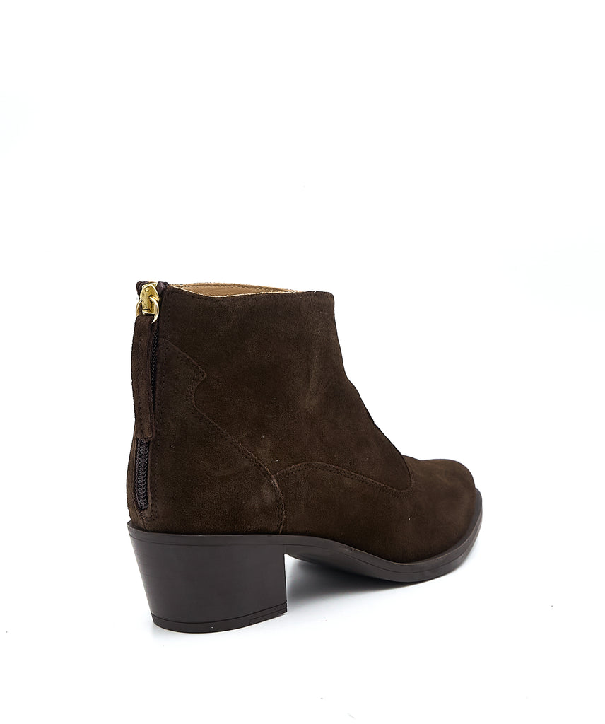 Tronchetto texano in pelle con tacco da 5 cm che bilancia comfort e eleganza. La suola in gomma assicura stabilità e grip affidabile su diverse superfici, mentre la costruzione in pelle garantisce traspirabilità e adattamento naturale al piede. L'altezza moderata del tacco favorisce una postura corretta durante l'uso prolungato. La tonalità moro si distingue per versatilità cromatica, perfetta per completare look sia casual che più raffinati. Una scelta consapevole per chi privilegia qualità costruttiva e funzionalità.