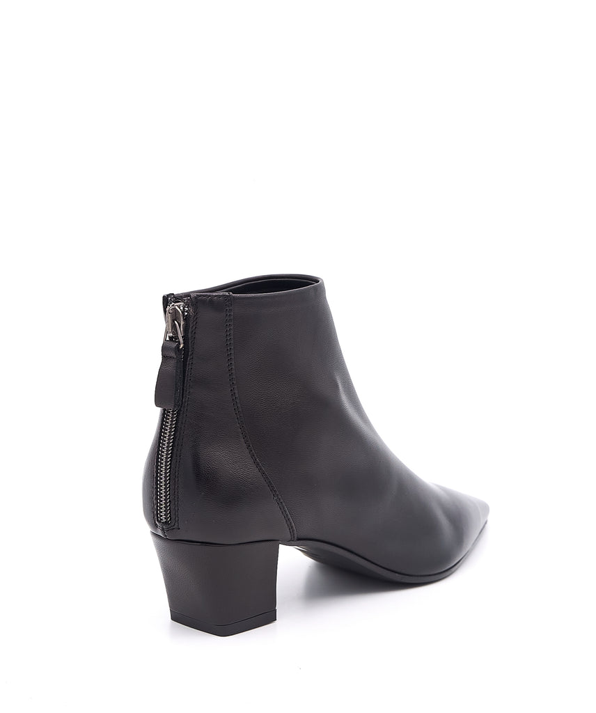 This refined black leather tronchetto features a full leather lining and a comfortable 5 cm heel, combining durability with sophisticated style. Expertly crafted, it offers both elegance and support, perfect for those seeking a polished yet practical footwear option.