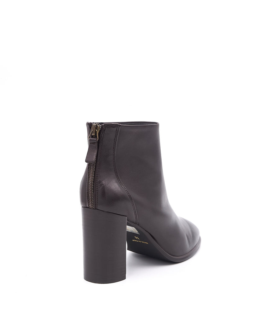Il tronchetto CENTODIECI in nappa presenta una silhouette slanciata valorizzata da un tacco largo di 8 cm, che garantisce stabilità e comfort durante l’uso prolungato. La zip posteriore assicura una calzata facile e precisa, mentre il materiale in nappa dona un aspetto raffinato e una texture morbida, ideale per chi cerca un connubio tra eleganza e funzionalità.