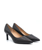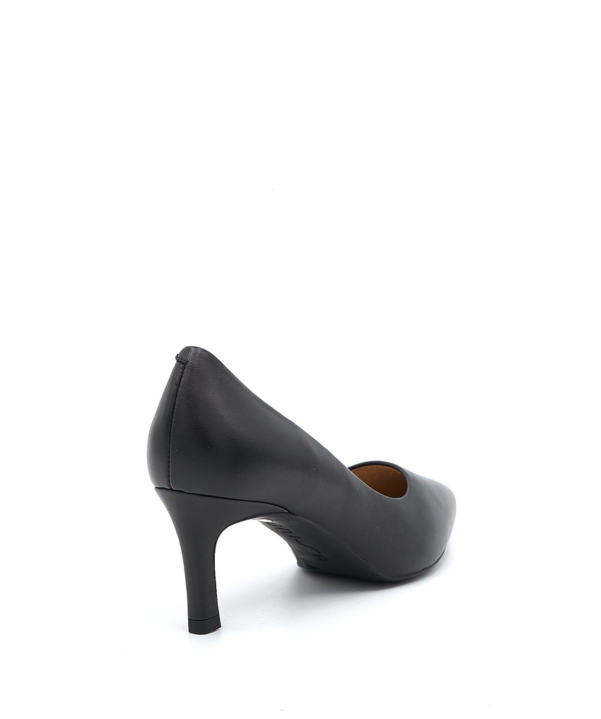 Décolleté a punta in pelle nera con tacco medio di 70 mm, progettata per offrire un perfetto equilibrio tra eleganza e comfort. La scelta della pelle garantisce resistenza e una calzata confortevole, mentre il tacco nelle dimensioni ideali valorizza la figura senza rinunciare alla praticità d’uso quotidiana. Una calzatura sofisticata, ideale per completare look raffinati in contesti professionali o formali.