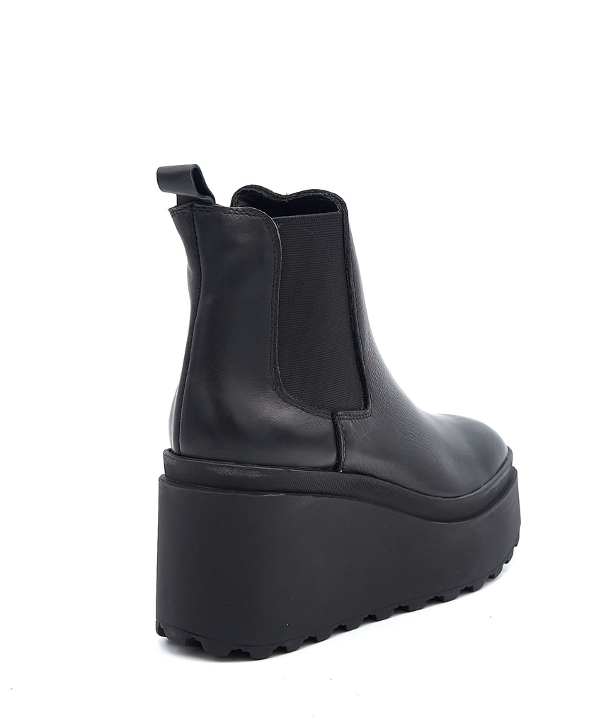 Tronchetto Beatles con zeppa alta 8 cm in pelle nera. Un modello che unisce lo stile retrò degli anni '60 con la comodità di una zeppa generosa, perfetta per chi desidera guadagnare altezza senza compromessi sulla stabilità. La suola in zeppa garantisce un'andatura naturale e confortevole durante tutta la giornata. La pelle nera, materiale nobile e versatile, si abbina facilmente a diversi outfit, dal casual al più elegante. Un capo essenziale per chi apprezza i dettagli vintage con un tocco contemporaneo.