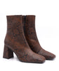 Questo tronchetto in pelle stampa pitone con tacco largo da 70mm unisce eleganza e comfort. La finitura pitone aggiunge un tocco sofisticato e distintivo, mentre il tacco spesso garantisce stabilità e supporto durante tutta la giornata. Perfetto per chi cerca un calzatura di qualità che valorizzi ogni outfit con sicurezza e stile.